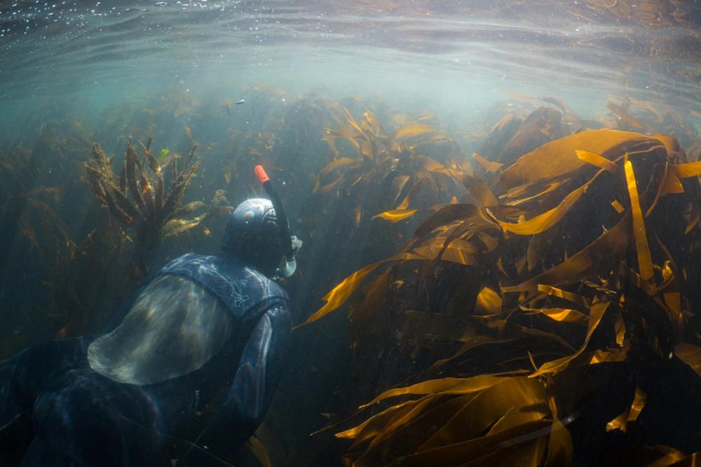 A freediver explores a modern-day kelp forest in Wales, UK. © Lou Luddington